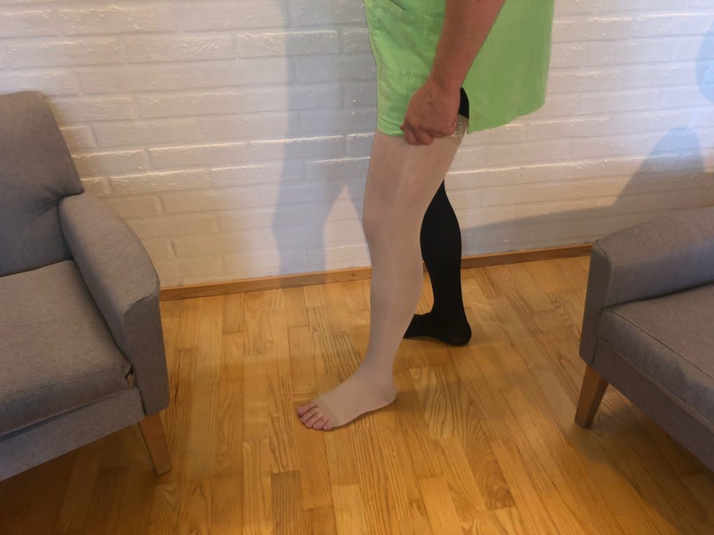 Suonikohjujen kirurgisen operaation jälkeen (reisipituinen CCL2 tukisukka).