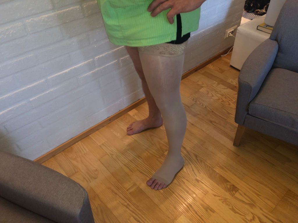 Polvileikkauksen jälkeiseen turvotuksen hoitoon (reisipituinen CCL2 tukisukka).